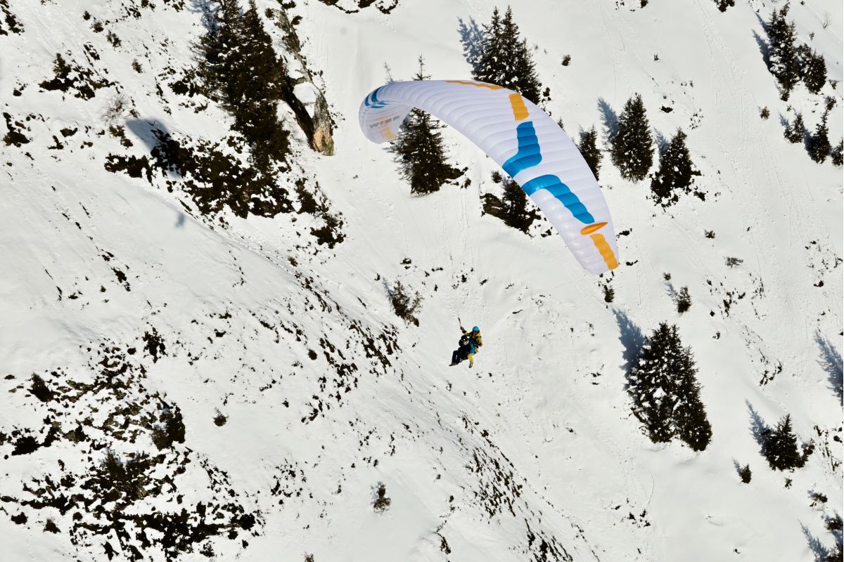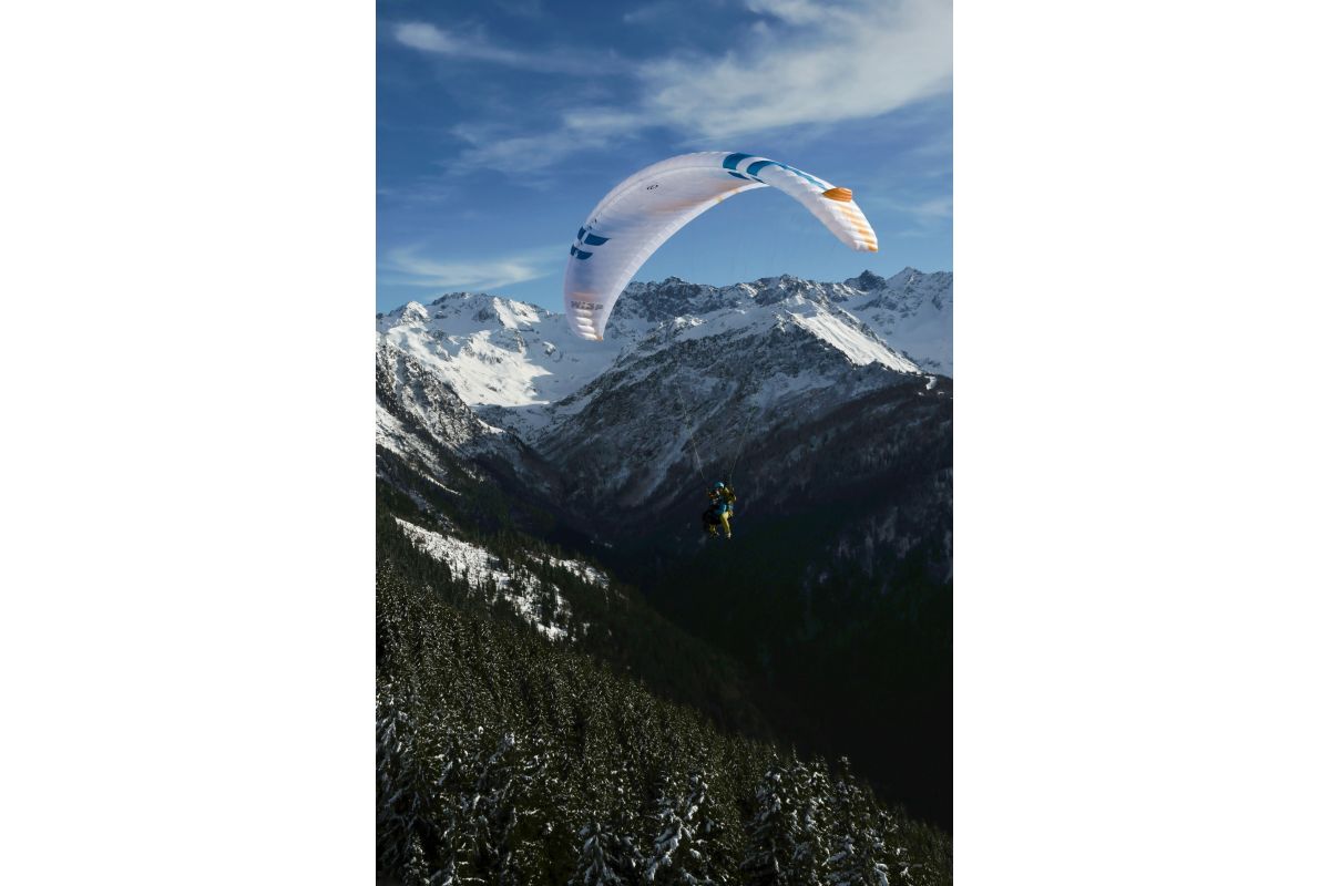El despegue desde espacios reducidos y en condiciones poco ideales se ve facilitado por sus sencillas características de inflado y despegue. La vela se infla fácilmente en condiciones de viento nulo, y no adelanta cuando el viento es más fuerte. El recorrido de carrera necesario para el despegue es excepcionalmente corto para una vela de este tamaño. En el aire, la vela es sólida con una excelente estabilidad estructural para hacer frente a las turbulencias más exigentes. La naturaleza sólida y compacta de la vela se complementa con un mando divertido y directo: los frenos son precisos, con una respuesta lineal al alabeo y un radio de giro ajustado. Esta agilidad hace que sea una vela divertida de volar, tanto si estás girando térmicas en vuelos de distancia como si simplemente estás haciendo un descenso en condiciones tranquilas. El aterrizaje es sencillo con buena autoridad en el frenado final. Los trimmers deben llevarse totalmente metidos, es decir, en la posición lenta, para tener la máxima eficiencia en el despegue y aterrizaje en condiciones normales.